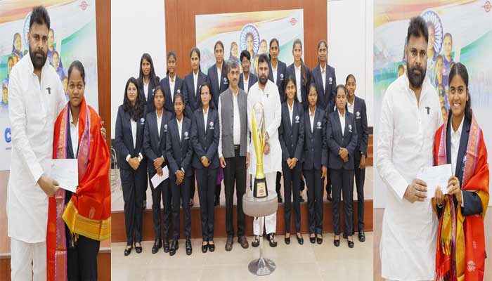 ఆంధ్రప్రదేశ్ క్రీడాకారిణులు:- ప్రపంచ కప్ గెలిచిన జట్టులో ఉన్న ఆంధ్రప్రదేశ్ క్రీడాకారిణులు దీపిక (జట్టు కెప్టన్), పాంగి కరుణా కుమారి ఉండటం సంతోషంగా ఉందన్నారు. ఈ సందర్భంగా జట్టు కెప్టన్ దీపిక తమ గ్రామ సమస్యలు తెలిపారు. ఆమె శ్రీ సత్యసాయి జిల్లా హేమావత్ పంచాయతీ తంబలహట్టి తండాకు చెందినవారు. తమ గ్రామానికి రహదారి సౌకర్యం కావాలని దీపిక విజ్ఞప్తి చేశారు. ఇందుకు అవసరమైన చర్యలు చేపట్టాలని అధికారులను ఉప ముఖ్యమంత్రి పవన్ కల్యాణ్ ఆదేశించారు. అల్లూరి సీతారామరాజు జిల్లాకి చెందిన క్రికెటర్ కరుణకుమారికి చేసిన విజ్ఞప్తులపైనా తక్షణమే చర్యలు ప్రారంభించాలని పేషీ అధికారులకు సూచించారు.