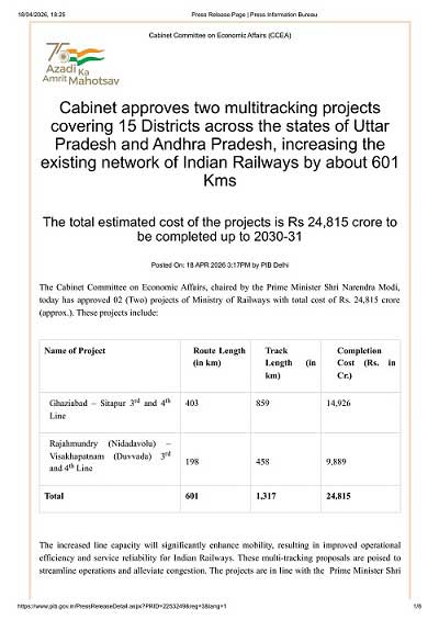 అమరావతి: ఆంధ్రప్రదేశ్ తీరప్రాంతంలో రవాణా వ్యవస్థను మరింత బలోపేతం చేసే దిశగా కేంద్ర రైల్వేశాఖ ఒక భారీ ప్రాజెక్టుకు శ్రీకారం చుట్టింది. అత్యంత రద్దీగా ఉండే చెన్నై-హౌరా ప్రధాన మార్గంలో భాగంగా, నిడదవోలు నుంచి దువ్వాడ వరకు 3,4 రైల్వేలైన్ల నిర్మాణానికి ఆమోదం తెలిపింది. ఈ మెగా ప్రాజెక్టు 198 కిలోమీటర్ల నిర్మాణానికి రూ.9889 కోట్లు ఖర్చు అవుతుందని అంచనా.