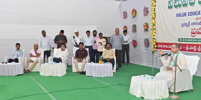 నెల్లూరు: విద్యార్ధులలో నైతికత, క్రమశిక్షణ, సమాజం పట్ల గౌరవం పెంపోదించే విధముగా బ్రహ్మశ్రీ చాగంటి కోటేశ్వరరావు ప్రవచానాలు ఎంతో ఉపయోగ పడతాయని, జిల్లా కలెక్టర్ హిమాన్షు శుక్లా పేర్కొన్నారు. పాఠశాల విద్యాశాఖ ఆద్వర్యంలో కస్తురిభా కళా క్షేత్రములో విలువల విద్యా సదస్సు పై ప్రభుత్వ సలహాదారు బ్రహ్మశ్రీ చాగంటి కోటేశ్వరరావు గురువారం ప్రవచనం నిర్వహించారు. ఈ సందర్బంగా కలెక్టర్ మాట్లాడుతూ రాష్ట్ర ప్రభుత్వం పాఠశాల విద్యా శాఖల అభివురుద్ధికి తగు సూచనలు, సలాహాలు కోసం బ్రహ్మశ్రీ చాగంటి కోటేశ్వరరావును ప్రభుత్వ సలహా దారునిగా నియమించినదని తెలిపారు. భారతీయ సనాతన ధర్మాలతోపాటు, తల్లి తండ్రులు, గురువుల పట్ల, నైతిక విలువలు తెలియచేసి విద్యార్ధులలో అవగాహన అవసరం అన్నారు. ప్రభుత్వ సలాహా దారునిగా ఆయన ఆలోచనలు, అనుభవాలు ఎంతో ఉపయోకరమని తెలిపారు .వారి ప్రవచనాలు జీవన మార్గ దర్శకమని ,సమాజ మార్పునునకు ఉపయోగపడతాయని అన్నారు. జ్ఞానం మార్గాన్ని, విలువలు గమ్యానికి చేరుస్తాయని ఆయన తెలిపారు. ఉపాద్యాయులు, విద్యా వేత్తలు విద్యాభివృద్ధిపై దృష్టి పెట్టాలని పేర్కొన్నారు.