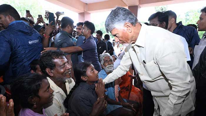 అమరావతి: డాక్టర్ బీఆర్ అంబేద్కర్ కోనసీమ జిల్లా, అల్లవరం మండలం, ఓడలరేవులో బుధవారం ముఖ్యమంత్రి చంద్రబాబు నాయుడు తుఫాన్ బాధితులను పరామర్శించారు. పునరావాస కేంద్రాల్లోని నిర్వాసిత కుటుంబాలకు నిత్యావసర సరుకులు, 25 కేజీల బియ్యం, ఒక్కో కుటుంబానికి రూ.3 వేల చొప్పున సాయం అందించారు. అనంతరం అరగట్లపాలెం, బెండమూరు లంక గ్రామాల్లో నీట మునిగిన పంట పొలాలను సీఎం చంద్రబాబు పరిశీలించి రైతులతో మాట్లాడారు. ప్రభుత్వం ఆదుకుంటుందని భరోసా ఇచ్చారు.