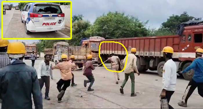 కార్మికుల ఆగ్రహంతో, ప్రాణ భయంతో ఘటనా స్థలం నుంచి పరారైన పోలీసులు