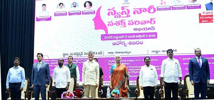 అమరావతి: ఆరోగ్యం విషయంలో ప్రతి ఒక్కరూ జాగ్రత్తగా వ్యవహరించాలని, ప్రజారోగ్యానికి ఎన్డీఏ ప్రభుత్వం అధిక ప్రాధాన్యత ఇస్తోందని ముఖ్యమంత్రి చంద్రబాబు స్పష్టం చేశారు. విశాఖలో ఏర్పాటు చేసిన స్వస్త్ నారీ-సశక్త్ పరివార్ అభియాన్ కార్యక్రమంలో కేంద్ర ఆర్థిక మంత్రి నిర్మలా సీతారామన్ తో కలిసి ముఖ్యమంత్రి పాల్గొన్నారు. ప్రధాని మోదీ ప్రసంగాన్ని లైవ్లో వీక్షించారు. అనంతరం ముఖ్యమంత్రి మాట్లాడుతూ.. “పేదల అభ్యున్నతి, మహిళల ఆరోగ్యం పై ప్రధాని మోదీ ప్రత్యేక దృష్టి పెట్టారు. మోదీ పుట్టినరోజు సందర్భంగా ఆయన సుదీర్ఘకాలం ప్రధానిగా ఉండి మంచి పాలన అందించాలని మనస్పూర్తిగా కోరుకుంటున్నాను. నరేంద్ర మోదీ నాయకత్వంలో 11 ఏళ్లలో మనదేశం 4వ అతిపెద్ద ఆర్థిక వ్యవస్థగా తయారైంది.2038 నాటికి ప్రపంచంలో రెండో అతిపెద్ద ఆర్థిక వ్యవస్థగా, 2047 నాటికి నెంబర్ వన్ గా తయారవుతుంది. వికసిత్ భారత్ కల సాకారంతో పేదరిక నిర్మూలన మనం చూడబోతున్నాం. జీఎస్టీ సంస్కరణలతో ప్రజల కొనుగోలు శక్తి పెరుగుతుంది. అలాగే దేశానికి సమర్థవంతమైన ఆర్థిక మంత్రిగా నిర్మలా సీతారామన్ పనిచేస్తున్నారు.