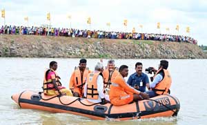 శ్రీశైలం నుంచి 738 కిలో మీటర్లు ప్రయాణించి కృష్ణమ్మ కుప్పానికి చేరుకుంది. దీంతో కుప్పం ప్రజల చిరకాల కోరిక నెరవేరింది. ఈ సందర్భంగా పరమసముద్రంచెరువు సమీపంలో ఏర్పాటు చేసిన బహిరంగసభలో ముఖ్యమంత్రి మాట్లాడుతూ… ‘నన్ను 8 సార్లు ఎమ్మెల్యేగా గెలిపించి ఆదరించిన నా కుప్పం నియోజకవర్గానికి కృష్ణా జలాలు తీసుకురావడంతో నా జన్మ ధన్యమైంది. నా సంకల్పం నెరవేరింది. నా ఆనందాన్ని మాటల్లో చెప్పలేను. కృష్ణా పుష్కరాలు 2028లో వస్తుంటే కుప్పానికి మాత్రం రెండేళ్లు ముందే వచ్చాయి. కుప్పం ప్రజలు నన్ను ఇంటి బిడ్డగా ఆదరించారు. వారికి నేను ఏం చేసినా తక్కువే’ అని చంద్రబాబు అన్నారు.