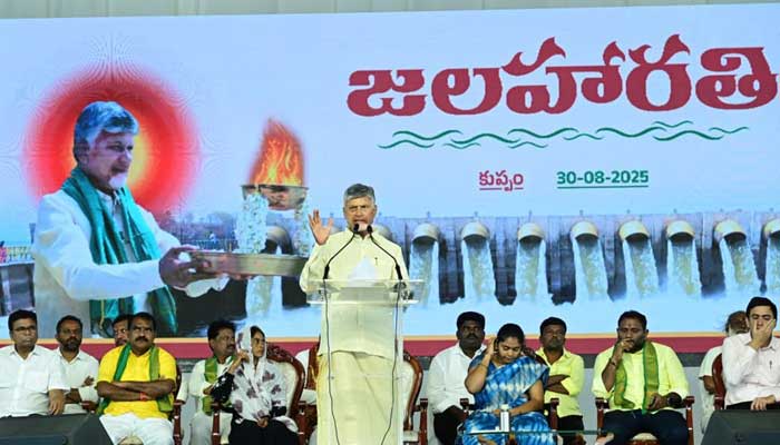 అమరావతి: “రాయలసీమ అభివృద్ధికి బ్లూ ప్రింట్ సిద్దం చేసుకున్నాం… అన్ని రంగాల్లోనూ సీమను అభివృద్ధి చేసేలా మా దగ్గర ప్రణాళికలున్నాయి. దీంట్లో భాగంగానే రాయలసీమకు హంద్రీ-నీవా కాల్వల విస్తరణ ద్వారా కుప్పం చిట్ట చివరి భూములకు నీటిని అందించాం. రాయలసీమకు నీళ్లు వస్తే వైసీపీకి జీర్ణం కాదు. వైసీపీకి నాటకాలు ఆడడం అలవాటు… ఎన్డీఏకు నీళ్లు తేవడం అలవాటు.” అని ముఖ్యమంత్రి చంద్రబాబు నాయుడు స్పష్టం చేశారు. శనివారం కుప్పం బ్రాంచ్ కెనాల్ వద్ద కృష్ణమ్మకు సీఎం చంద్రబాబు జలహరతి ఇచ్చారు. హంద్రీ-నీవా కాల్వల విస్తరణ ద్వారా కృష్ణా జాలాలు కుప్పం చివరి భూములకు చేరాయి.