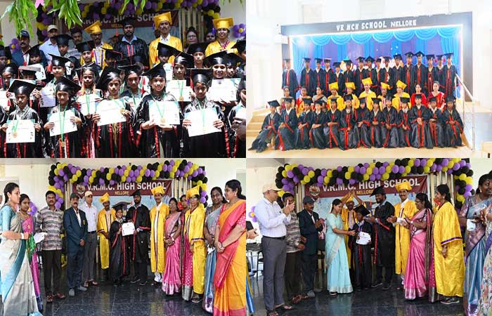 నెల్లూరు: నిరుపేదలకు కార్పొరేట్ స్థాయిలో ఉచిత విద్యను కల్పించాలన్న ఉన్నత లక్ష్యంతో పట్టణ పురపాలక శాఖ మంత్రివర్యులు డాక్టర్ పి.నారాయణ ఆలోచనలతో ఏర్పాటు చేసిన వి.ఆర్ మున్సిపల్ కార్పొరేషన్ హై స్కూల్ విద్యార్థులు క్రమశిక్షణతో ఉన్నత విద్యావంతులుగా ఎదిగి అందరికీ ఆదర్శంగా నిలవాలని కమిషనర్ వై.ఓ. నందన్ ఆకాంక్షించారు. స్థానిక వి.ఆర్. మున్సిపల్ కార్పొరేషన్ హైస్కూల్ ప్రాంగణంలో 180 మంది విద్యార్థులకు ప్రీ గ్రాడ్యుయేషన్ సర్టిఫికేట్స్, మెడల్స్ ను సోమవారం అందచేశారు. కార్యక్రమానికి ముఖ్య అతిథిగా హాజరైన కమిషనర్ మాట్లాడుతూ విద్యార్థి దశ నుంచే ఉన్నత లక్ష్యాలను నిర్దేశించుకుని విద్యతోపాటు క్రీడల్లో కూడా ప్రతిభ కనబరచాలని విద్యార్థులకు సూచించారు. ఈ కార్యక్రమంలో పాఠశాల ప్రధానోపాధ్యాయులు చింతాల వెంకటరావు, అడ్మినిస్ట్రేటివ్ ఆఫీసర్ వెంకటరమణ, అసిస్టెంట్ హెడ్మాస్టర్ లక్ష్మీనారాయణ, పి.ఈ.టి. గురు ప్రసాద్, వైస్ ప్రిన్సిపల్ జయలక్ష్మి, హరిత చంద్రకళ, ఎం.ఈ. ఓ.హమీద్, 436 మంది ప్రీ ప్రైమరీ, ప్రైమరీ విద్యార్థుల తల్లిదండ్రులు, ఉపాధ్యాయులు, ఉపాధ్యాయేతర సిబ్బంది పాల్గొన్నారు.