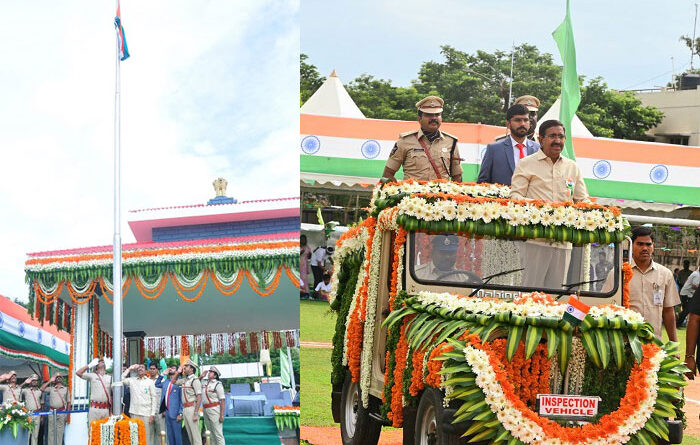 నెల్లూరు: స్వర్ణాంధ్ర 2047 లక్ష్య సాధనలో భాగంగా జిల్లాలోని అన్ని నియోజకవర్గాల్లో విజన్ యాక్షన్ ప్లాన్ డాక్యుమెంట్లను తయారు చేశామని, దీనికనుగుణంగా అన్ని రంగాల్లో అభివృద్ధి సాధించేందుకు కృషి చేస్తున్నట్లు రాష్ట్ర పురపాలక, పట్టణాభివృద్ధి శాఖ మంత్రి డాక్టర్ పొంగూరు నారాయణ పేర్కొన్నారు. 79వ స్వాతంత్య్ర దినోత్సవం సందర్భంగా నెల్లూరు పోలీసు కవాతు మైదానంలో అంగరంగ వైభవంగా జరిగిన వేడుకల్లో మంత్రి నారాయణ జాతీయ పతాకాన్ని ఆవిష్కరించి, జిల్లా కలెక్టర్ ఒ. ఆనంద్, జిల్లా ఎస్పీ కృష్ణకాంత్ వెంట రాగా పోలీసు గౌరవ వందనం స్వీకరించారు. శాంతి కపోతాలను ఎగరవేశారు. ఈ సందర్బంగా జిల్లా ప్రజలనుద్దేశించి మంత్రి నారాయణ మాట్లాడుతూ రాష్ట్రంలో పారదర్శకతతో కూడిన సుపరిపాలన అందిస్తూ, శాస్త్ర సాంకేతిక సహాయంతో నూతన విధానాలను అనుసరిస్తూ గ్రామాలు, పట్టణాల అభివృద్ధికి, అవినీతి రహిత సమాజాన్ని నెలకొల్పడమే లక్ష్యంగా మన ప్రభుత్వం అకుంఠిత దీక్షతో పనిచేస్తుందన్నారు. అన్ని నియోజకవర్గాల్లో విజన్ యాక్షన్ ప్లాన్ డాక్యుమెంట్ల మేరకు ప్రణాళిక బద్ధంగా అభివృద్ధిని సాధించేందుకు ముందుకు సాగుతున్నట్లు మంత్రి వివరించారు. అనంతరం శాఖల వారీగా ప్రగతి నివేదికను మంత్రి తన సందేశం ద్వారా ప్రజలకు వివరించారు.