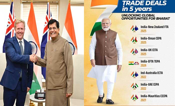 సేవల రంగం, యువతకు అవకాశాలు:- IT, ఫైనాన్స్, విద్య, టూరిజం, నిర్మాణ రంగాలకు కొత్త ద్వారాలు తెరుచుకుంటాయి. హెల్త్, సంప్రదాయ వైద్యం, స్టూడెంట్ మొబిలిటీ, పోస్ట్-స్టడీ వర్క్ పై న్యూజిలాండ్ తొలిసారి ప్రత్యేక అనెక్సులు చేర్చింది.5,000 తాత్కాలిక ఉద్యోగ వీసాలు, వర్కింగ్ హాలిడే వీసాలు, పోస్ట్-స్టడీ వర్క్ మార్గాలతో భారత యువతకు గ్లోబల్ అవకాశాలు విస్తరించనున్నాయి. ఈ భారత్–న్యూజిలాండ్ FTA ద్వారా ద్వైపాక్షిక ఆర్థిక భాగస్వామ్యం మరింత బలపడుతూ, వికసిత్ భారత్ 2047 లక్ష్య సాధనకు ఇది కీలక అడుగుగా మారనుందని పీయూష్ గోయల్ స్పష్టం చేశారు.