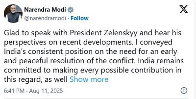 ఉక్రెయిన్ అధ్యక్షుడు జెలెన్ స్కీతో టెలిఫోన్ ద్వారా సంభాషించిన ప్రధాని మోదీ